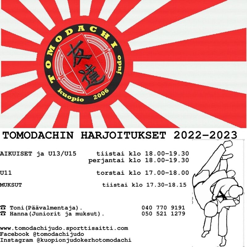 Tervetuloa harrastamaan judoa. Uusia* harrastajia otetaan ryhmiin elokuun ja syyskuun ajan**. Voit kokeilla judoa pari viikkoa ilman sitoutumista***. Muksujudo on suunnattu päiväkoti- ja eskari-ikäisille. Ohjelmassa on erilaisten taitoliikkeiden harjoittelua, kisailuja sekä pelejä.